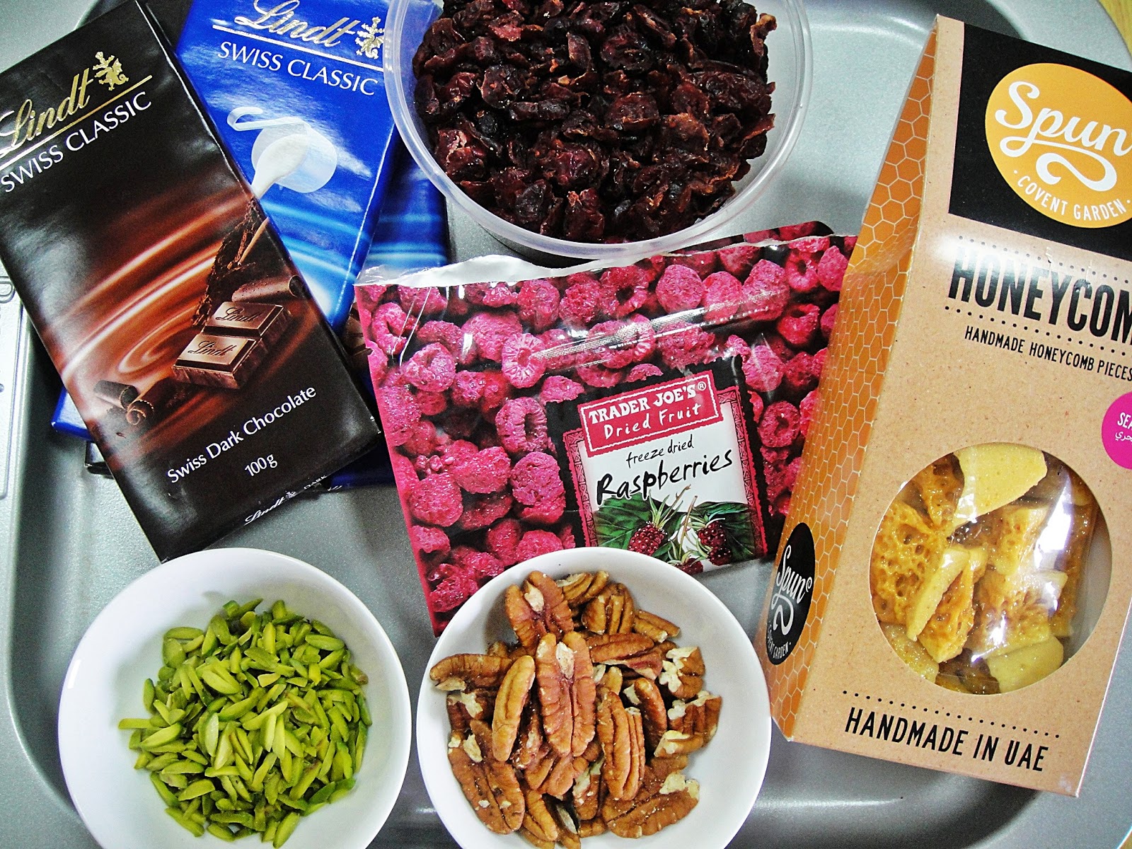 Chocolate bark has been around since I can remember, but its popularity has soared recently. To make your own, you should know that it is fully customizable to what you have in the pantry. Generally you only need 5 or 6 ingredients, and this combination stood out to me due to its variety in colors and flavors.